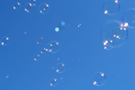 結婚式のあとフラワーシャワー、ライスシャワーのかわりに、ゲストにシャボン玉を吹いてもらう。